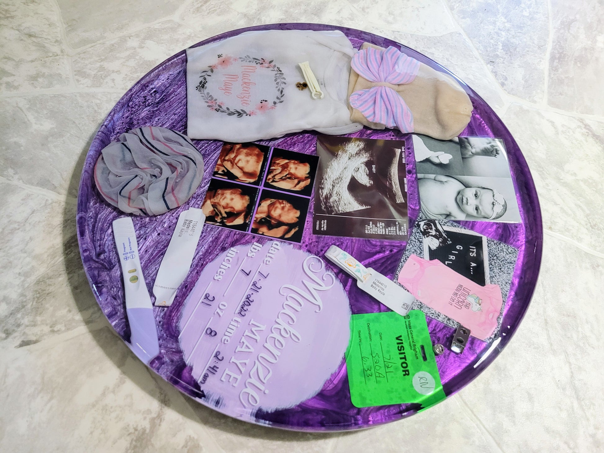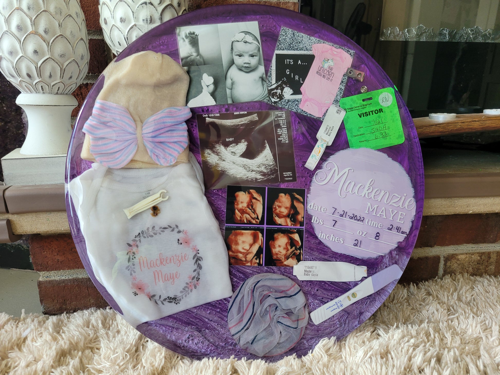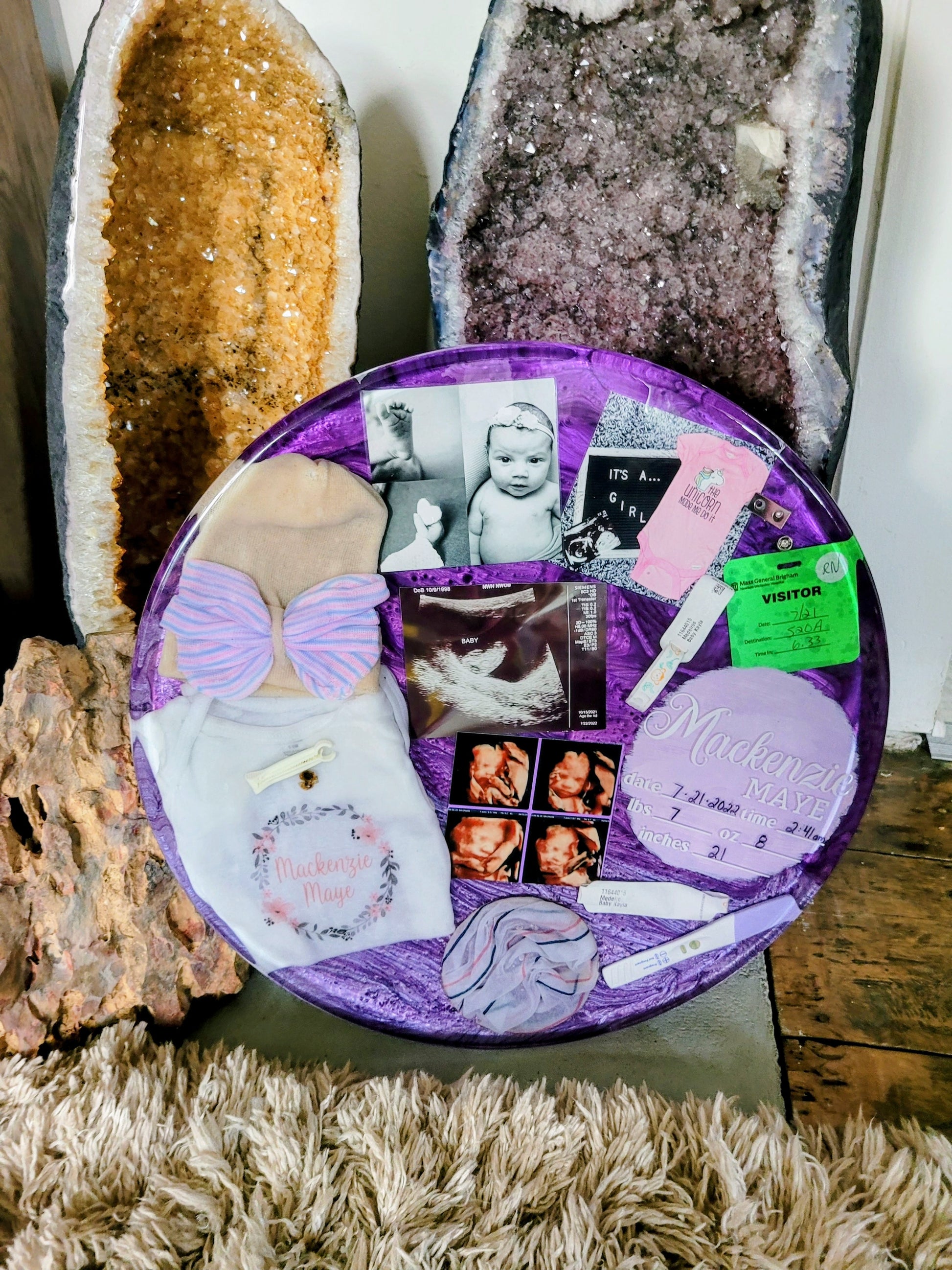 Celebrate your baby’s journey from newborn to their first year with our Newborn Resin Keepsake. Handcrafted with crystal-clear resin, each keepsake beautifully encapsulates treasured items like hospital bracelets, tiny footprints, or a first lock of hair. These custom pieces are perfect for baby showers, first birthdays, or simply cherishing those fleeting early moments.