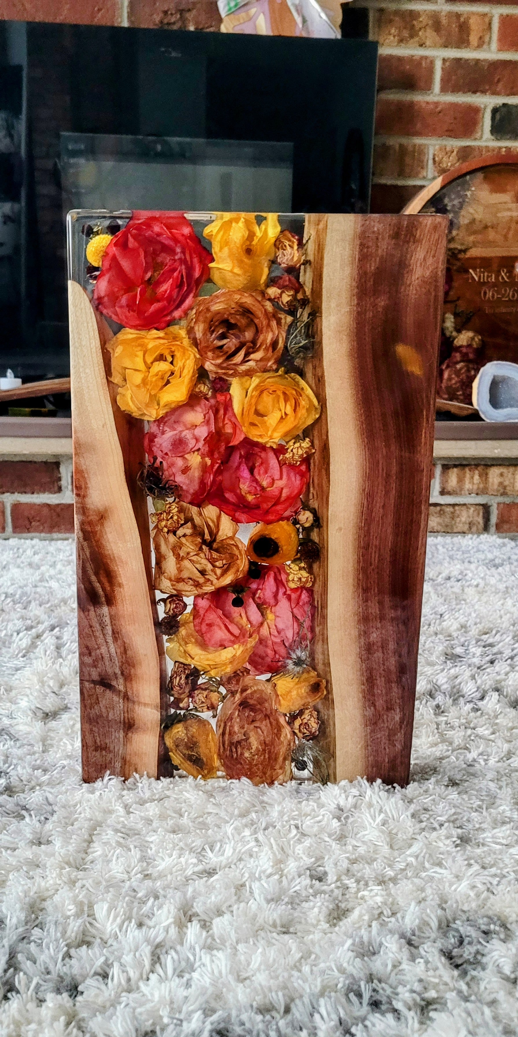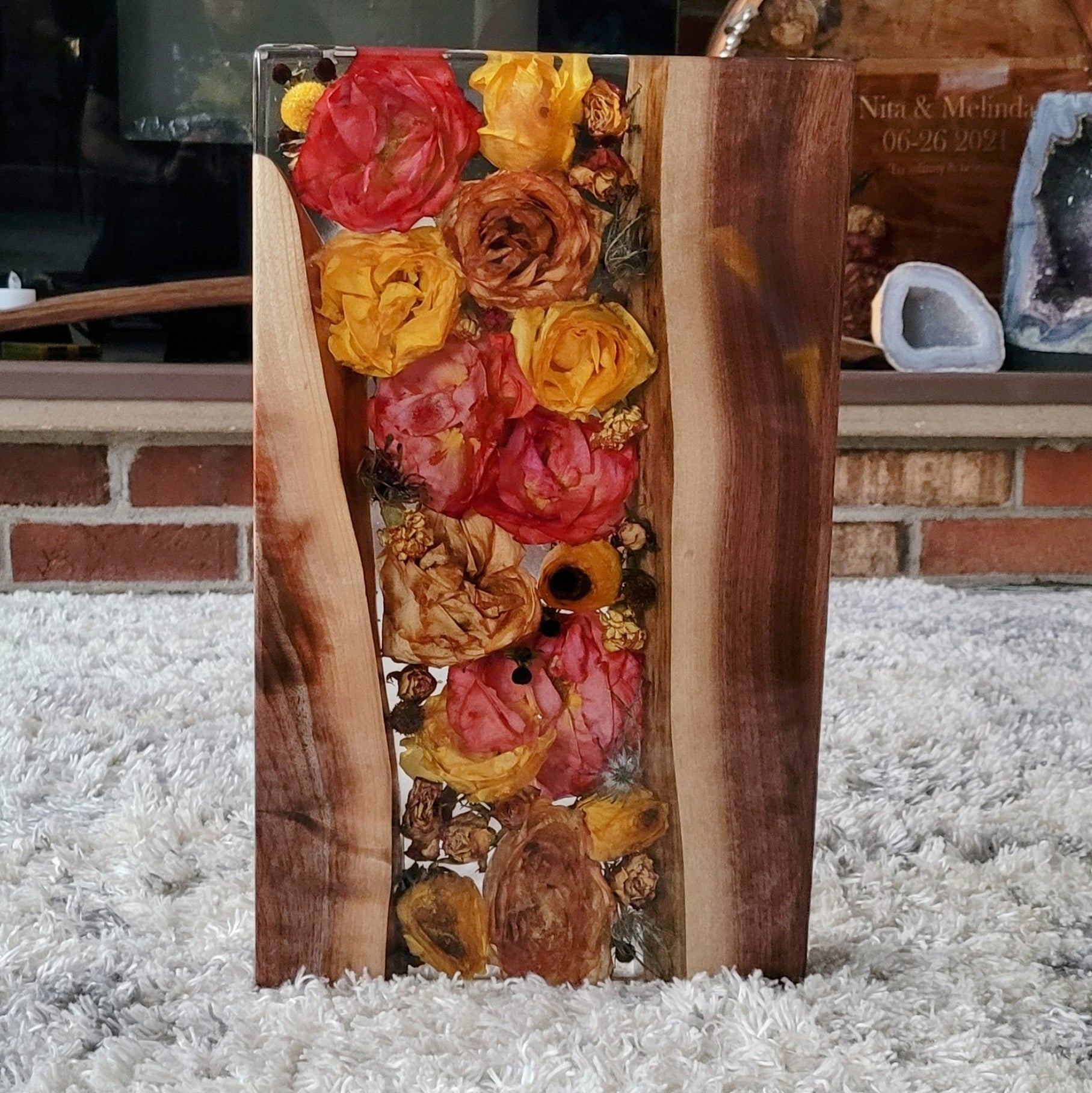 Bridal Bouquet Preservation Block – Handmade Hardwood & Crystal-Clear Resin Keepsake