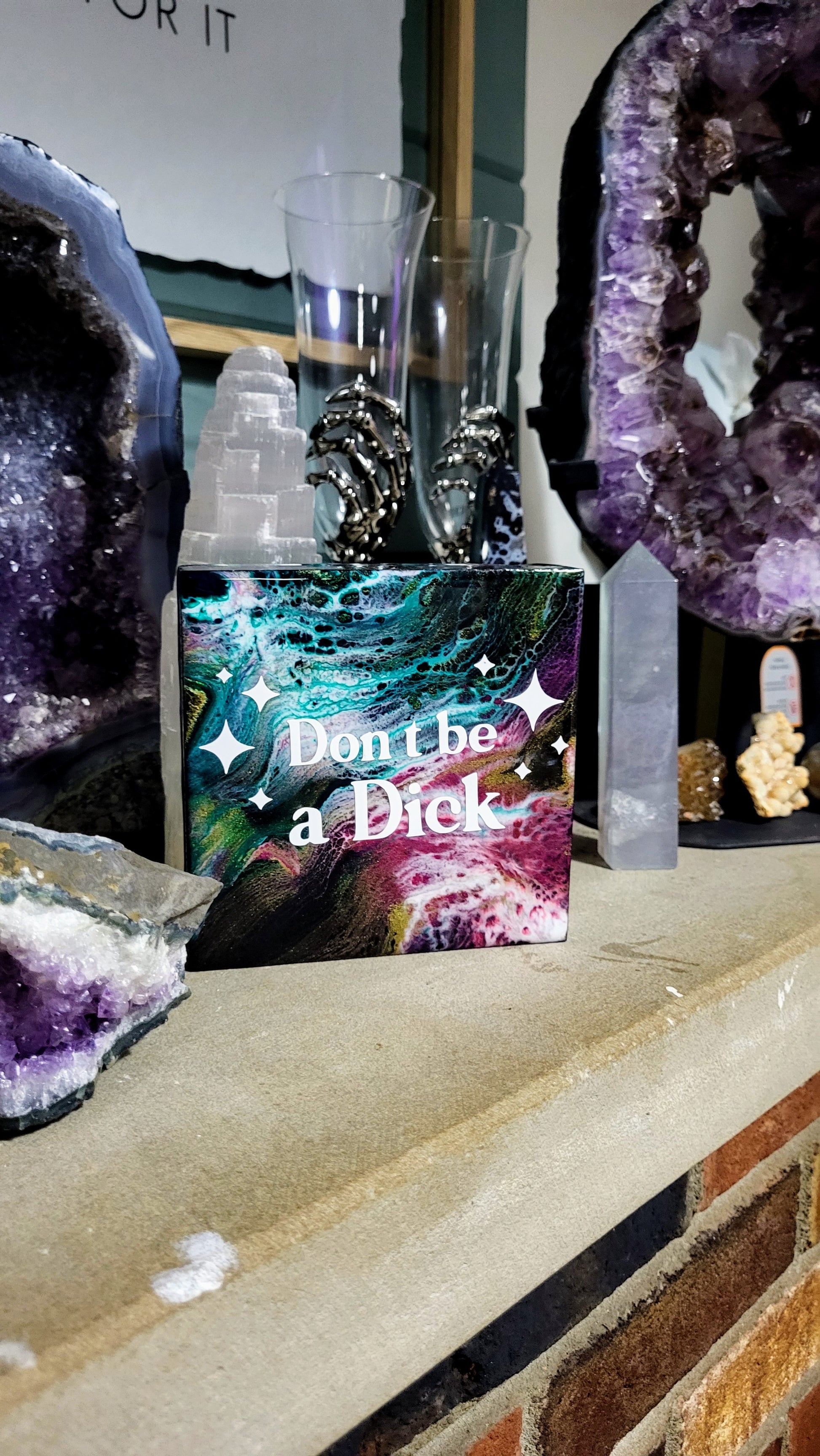 5x5 Don't be a Dick Resin Wall Art. Each piece is made by hand, so will be a little different. Fully customizable choose your 3 colors in the "note" section.