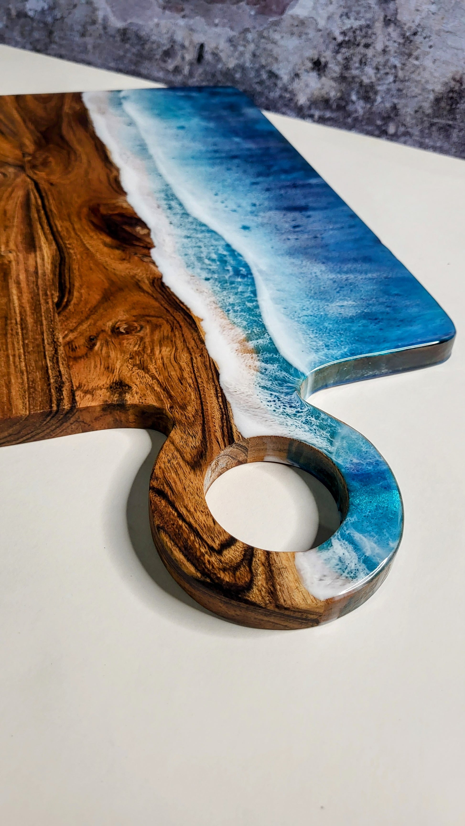 Ready To Ship!  Beautiful Acacia hardwood boards, topped with Nita's signature Oceans!  There is SO much depth in these pieces!  Dimensions are- 19x10⅛