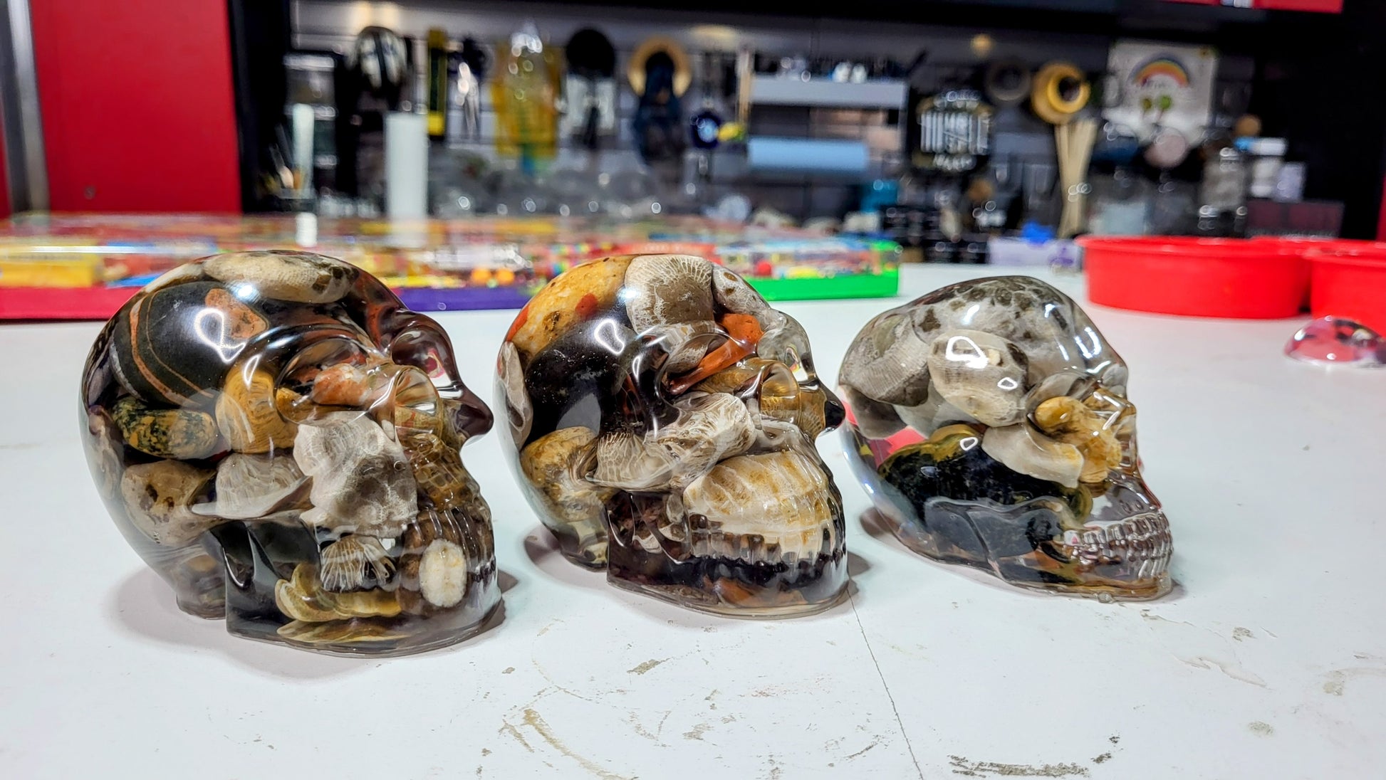 Petoskey Skull Resin Encapsulation – Michigan Fossils & Great Lakes Stones | Nita's Fluid Wood