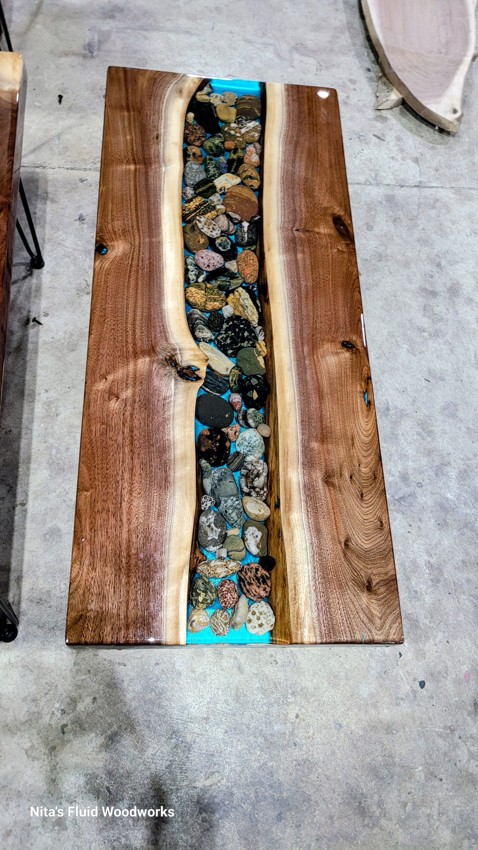 Discover the beauty of Petoskey stones with this handcrafted resin table, featuring stunning fossil patterns and high-quality craftsmanship. Perfect for nature lovers, beach enthusiasts, and those seeking unique, one-of-a-kind furniture. Add a touch of coastal elegance to your home—shop now at Nita's Fluid Wood!
