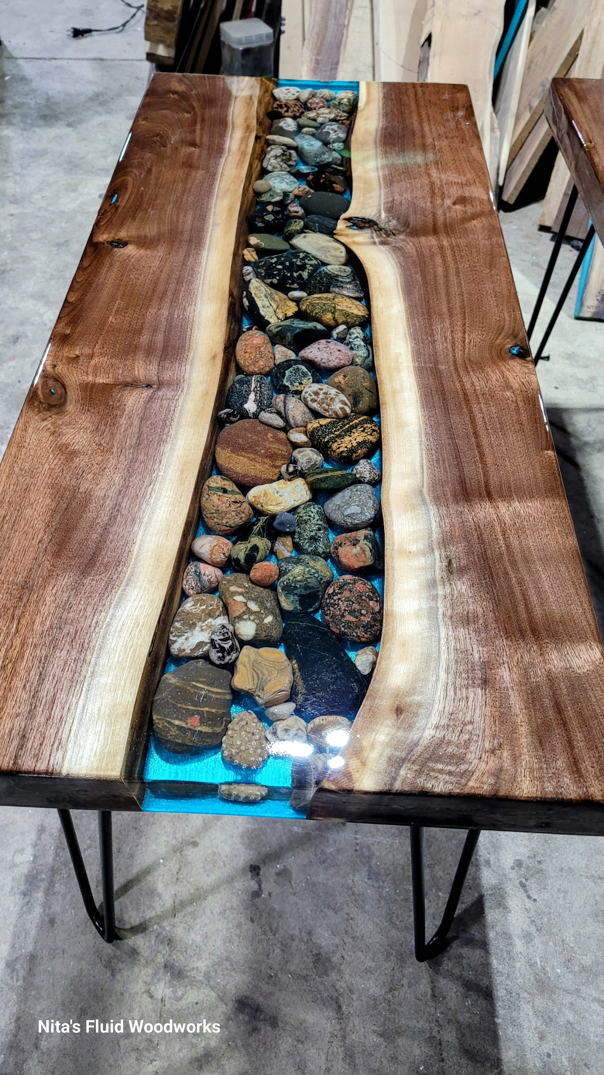 Handcrafted Petoskey Stone Table – Unique Resin Art Furniture | Nita's Fluid Wood