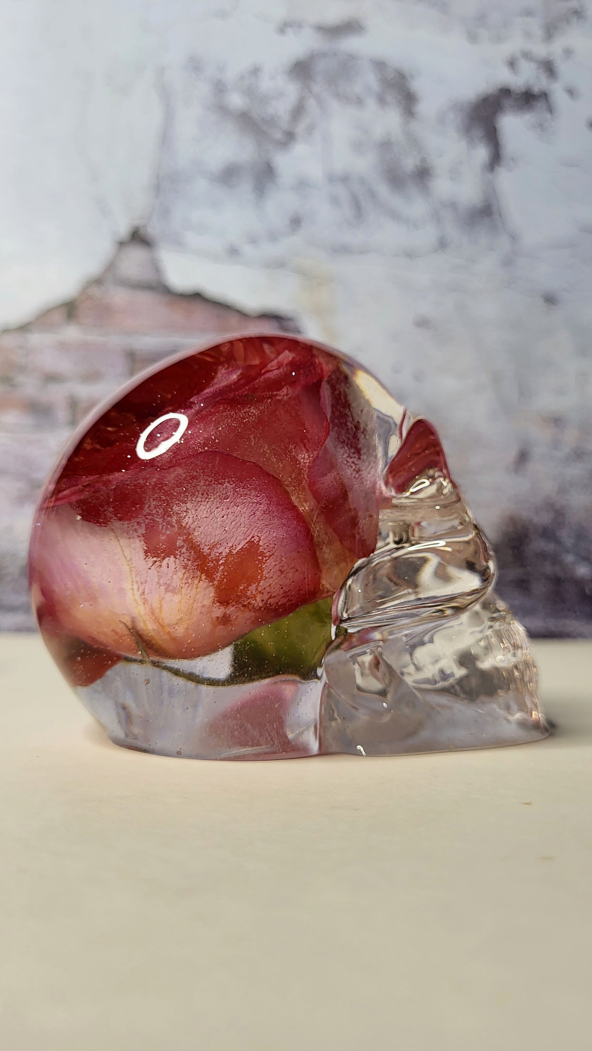 Beautiful Skull with a REAL rose preserved inside! Topped with a coat of MR FANCY PANTS secret sauce.