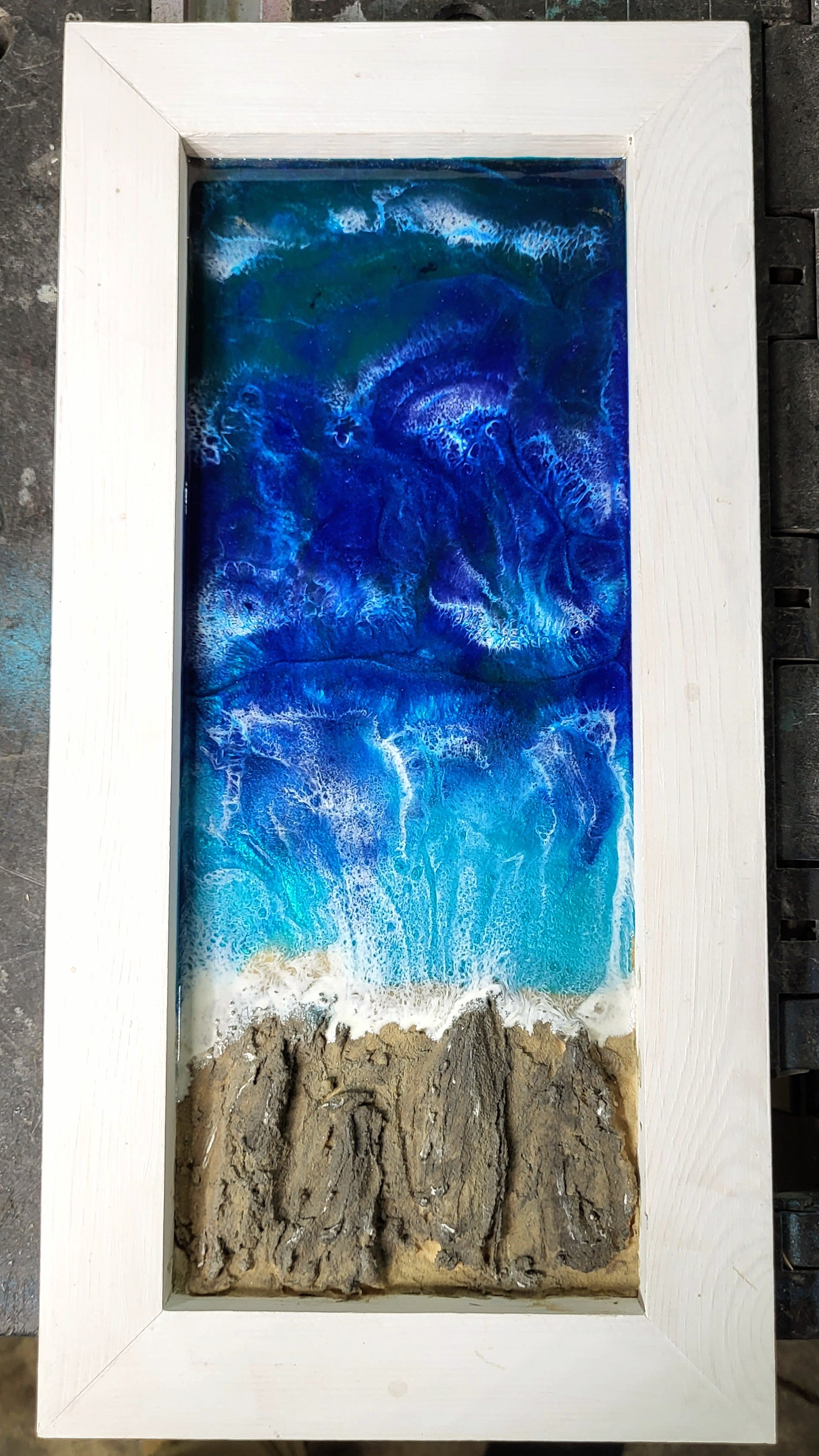 Beautiful 3 dimensional mixed media,  resin ocean wall art.  Piece measures at 16x8.