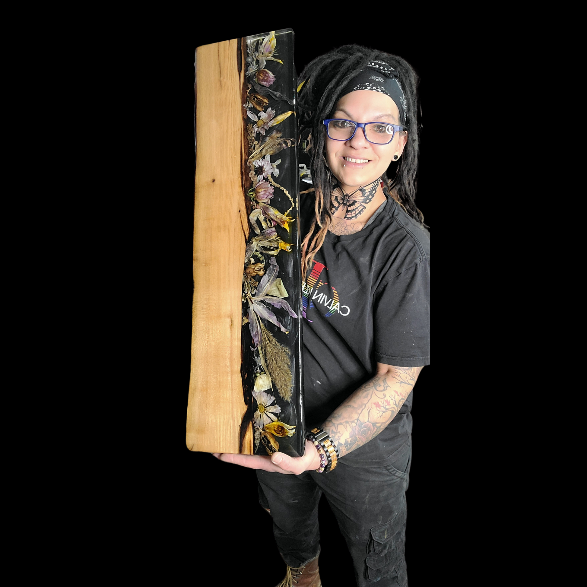 Each board is one-of-a-kind, designed to showcase your preserved blooms in crystal-clear resin, complemented by a high-quality hardwood base. Use it as a functional charcuterie board for celebrations, or display it as a timeless decorative piece in your home.