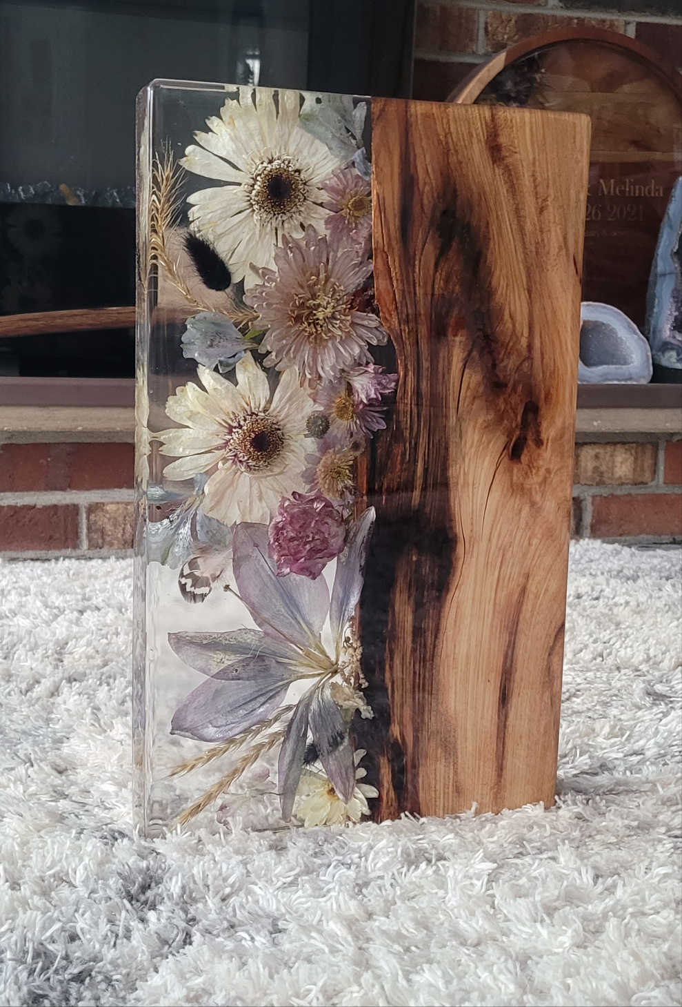 Each piece is handcrafted with love, using your real wedding flowers to create a one-of-a-kind keepsake. This Flower preservation board is heirloom-quality and captures the beauty of your bouquet in crystal clear resin, allowing you to cherish your special day for years to come.
