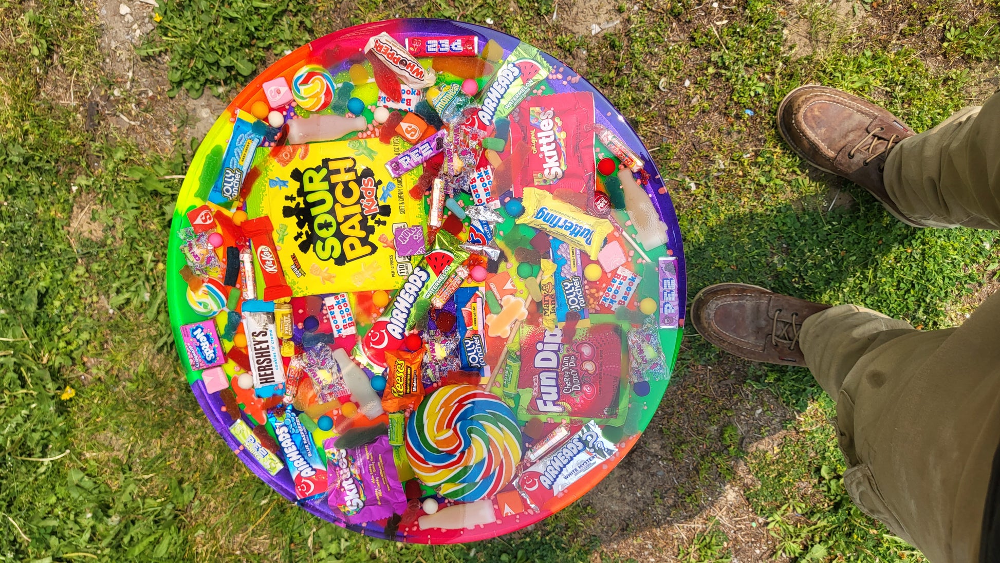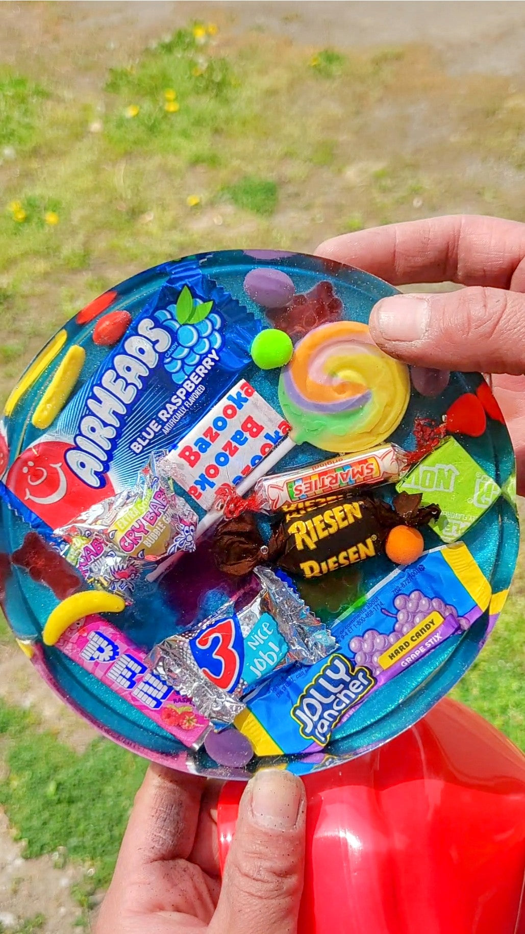 Choose your size option,  for this beautiful candy resin art. Capable to Stand alone, stand is included, also optional hanging hardware! 6", 12", 18", and 24" rectangle sizes available! Contact for custom orders.