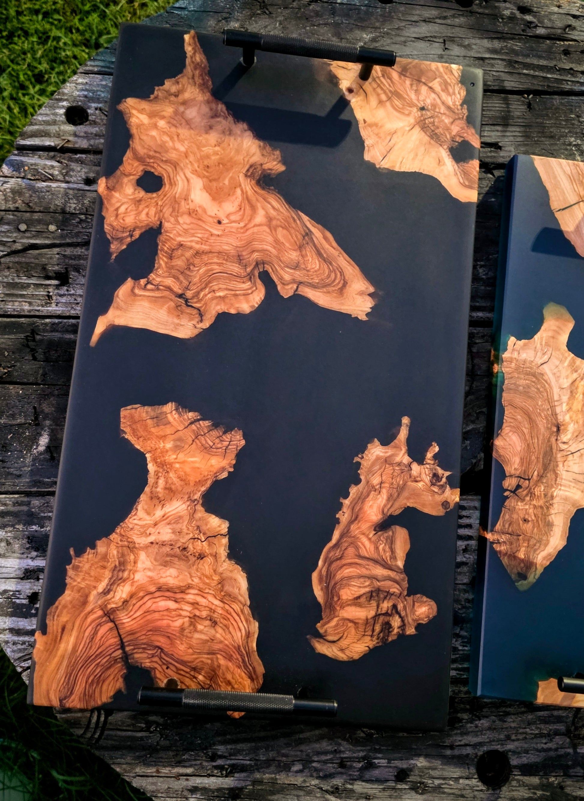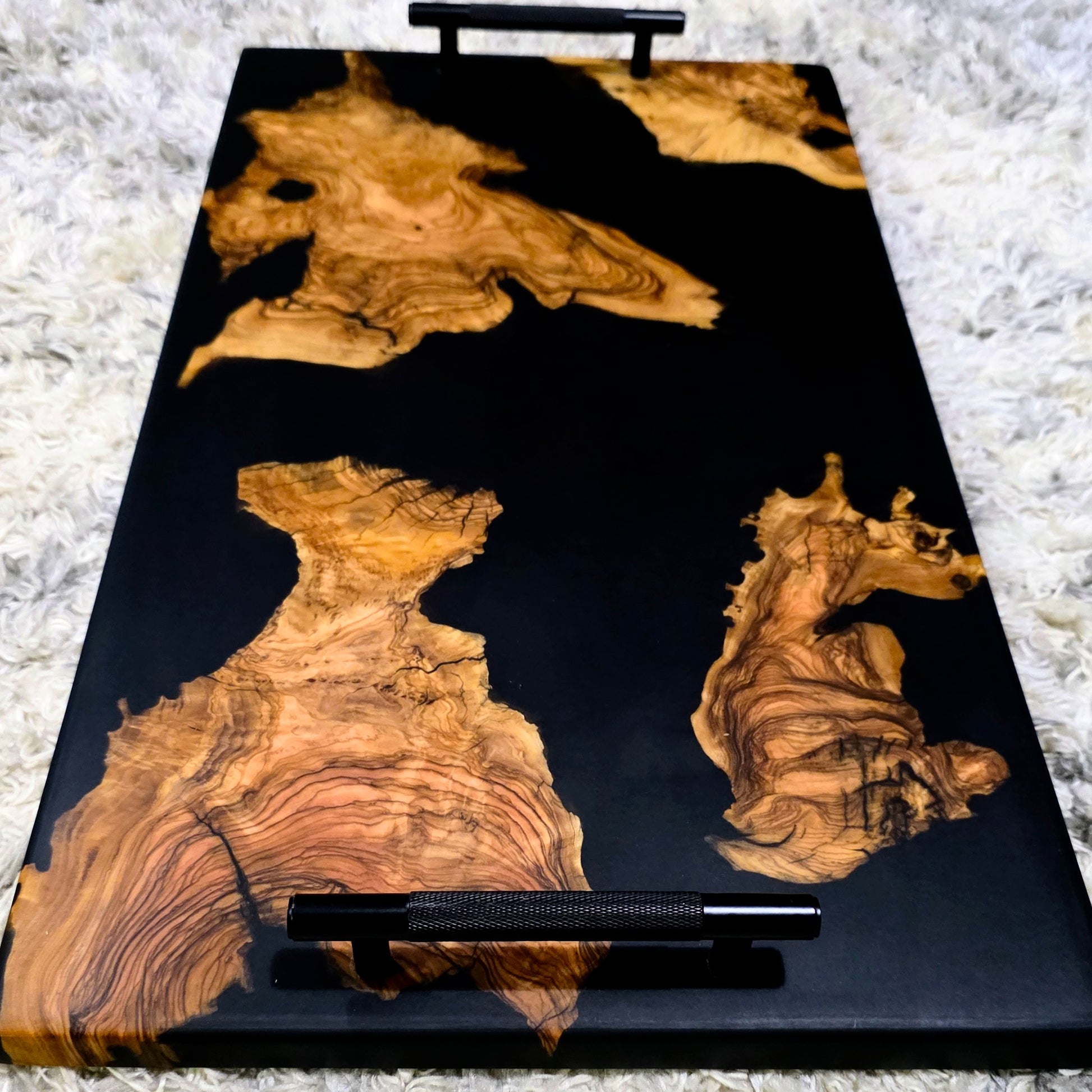 Black Olivewood Serving Tray, Resin wood Charcuterie Board, Rolling Tray